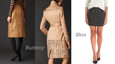 Burberry agujerea las faldas y abrigos, no es la primera vez que lo vemos, también lo vimos la semana pasada en una falda de Antony Vacarello y ahora es Sfera la que se anima a esta nueva moda. Os recordamos el clon de la semana pasada de Mango.