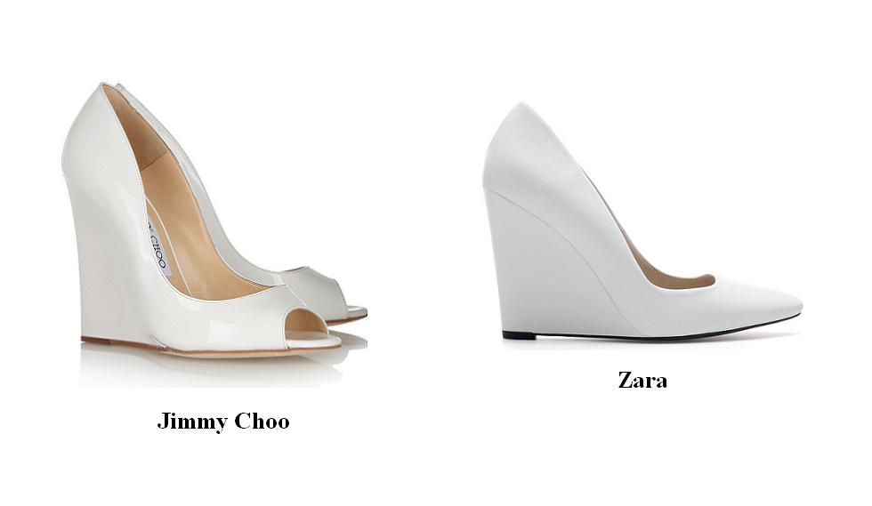 Ahora vamos con todos los clones zapateriles que son una pasada. Los primeros son de Zara clon de unos de Jimmy Choo, la única diferencia es la puntera que los auténticos tienen los dedos al descubierto y Zara parece curarse en salud cambiando un poco (pero muy poco) el modelo.