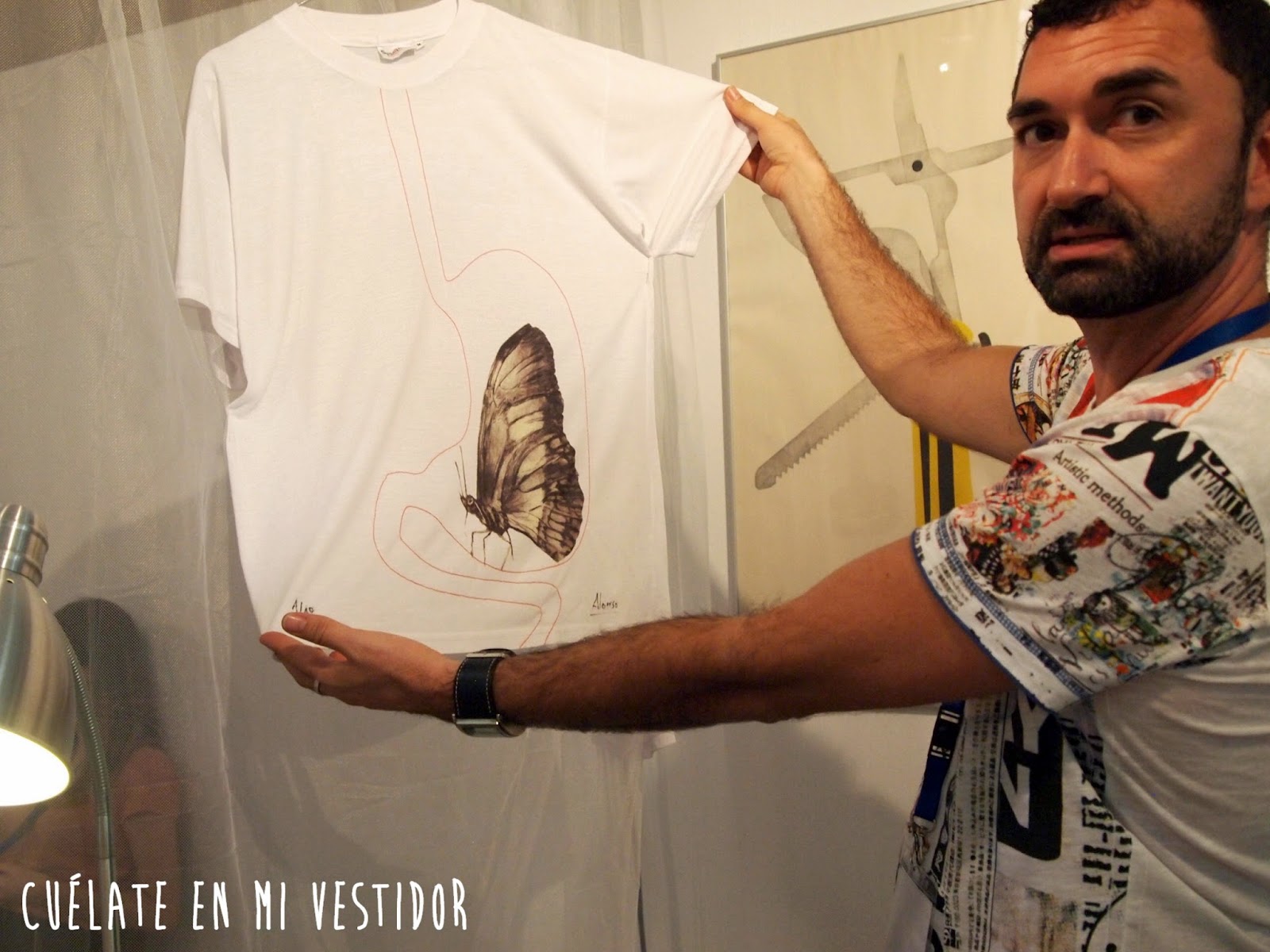 DAVID ALONSO me muestra que más allá de la cocina podemos encontrar arte plasmado en cuadros y ropa con ediciones limitadas. Latas de conserva como piezas de arte y una gran sardina dibujada en una camiseta haciendo de corbata.