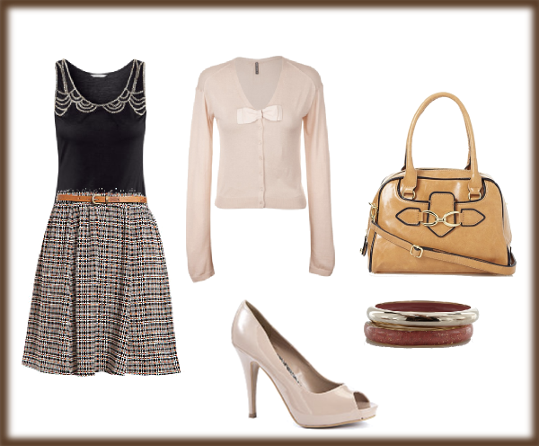 Estaríamos de lo más apropiadas en la oficina, en una reunión de trabajo, o en una mañana de compras y café con las amigas con un look de vestido de corte ‘fifties’, con mucho vuelo pero ceñido en la cintura en tonos pastel con estampados florales. Esta temporada se llevan mucho las flores y estamos viendo mucho color en las tiendas. Para completar el look, unos stilettos en color maquillaje y maxi collar de pedrería.